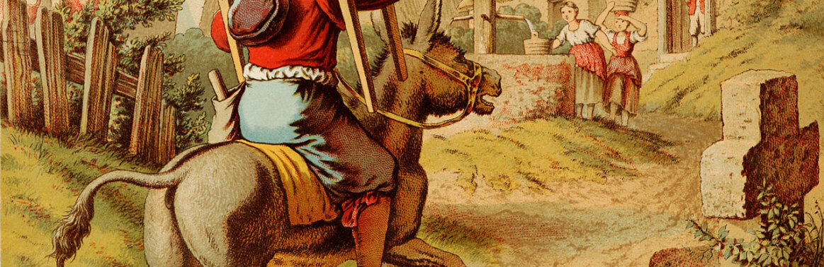 An einem Sommermorgen saß ein Schneiderlein auf seinem Tisch am Fenster, war guter Dinge und nähte aus Leibeskräften. Da kam eine Bauersfrau die Straße herab und rief „gut Mus feil! gut Mus feil!“ Das klang dem Schneiderlein lieblich in die Ohren, er steckte sein zartes Haupt zum Fenster hinaus und rief „hier herauf, liebe Frau, hier wird sie ihre Waare los.“